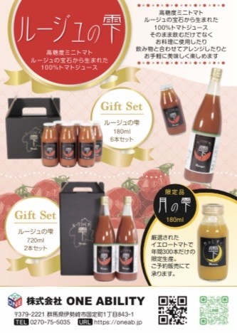 『何とかジュースにできないか?』と思いトマトジュースを作っている大手メーカーから、地方のジュース加工場を含め飛び回った結果、トマトジュースを製造する道を探し当てました。群馬県内北部ではリンゴの生産が盛んで、リンゴの山地にはジュース加工場があると聞きつけ群馬県川場村まで。そこでリンゴのシーズン以外で、トマトジュースの加工を請け負ってもらえる業者さんと契約まで結びつけました。現在では、中嶋さん以外の伊勢崎市内のトマト生産者の方も、トマトジュース販売を始めているそうです。まさにパイオニア的な存在となっているようです。