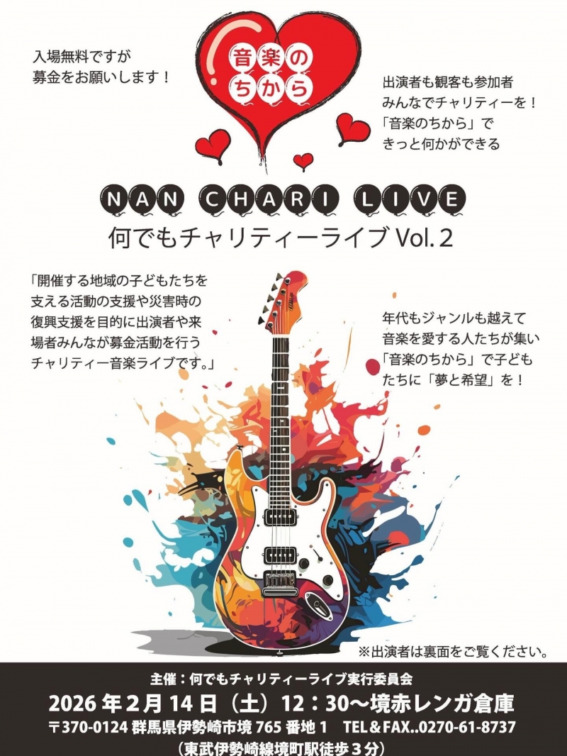 ――をテーマに掲げ、昨年10月に第1回が開催され盛況だった「NANCHARI LIVE 何でもチャリティーライブ」の第2弾が開催されます。