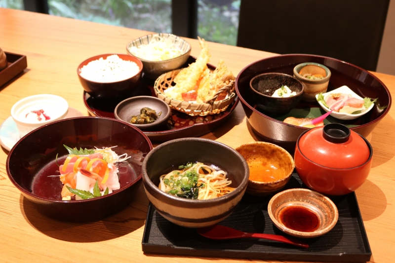 ランチタイムは、メイン、ご飯、小鉢などがそろったセットメニューが充実。お刺身、天ぷら、お肉料理など、毎日通っても飽きることのないバリエーション豊かなラインアップもうれしいところです。