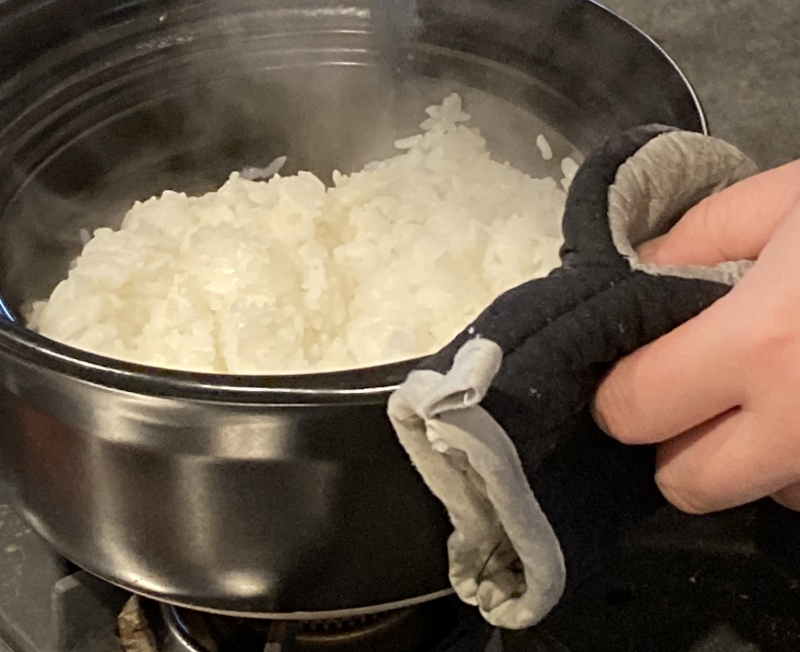 やがて目の前の土鍋からは、もくもくと真っ白な湯気が優しく立ち上り、あたり一面にお米の甘い香りが広がります。ご飯が完成していくのを待つ時間もご馳走。渡辺さんいわく「炊きたて熱々よりも、少し落ち着いて人肌くらいになった方が、お米本来の甘みや粘りがより強く感じられる」のだそう。一粒一粒が立った、究極のご飯に出会えます。