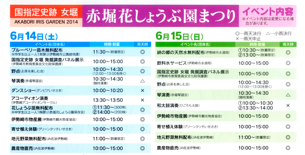 6月14日・15日、赤堀花しょうぶ園まつり開催