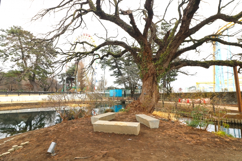 三つめは、随所にライトアップの照明が備えられたこと。太鼓橋近くにあるメインツリー・アカメヤナギ近く、遠路沿いのほか、東屋やベンチを照らすように配置されています。夜の幻想的な景色が見られそう。想像するだけでわくわくします。