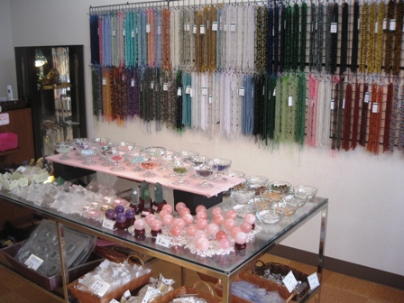 店内には、天然石、パワーストーン、各種パール、ビーズなどのほか、アクセサリー作りに必要なパーツも販売されています。