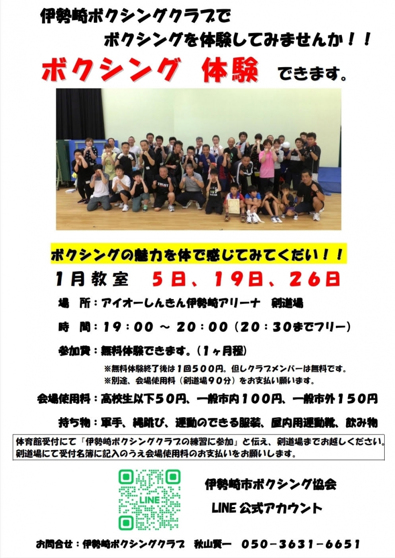 お問合せ:伊勢崎ボクシングクラブ 秋山賢一 050-3631-6651