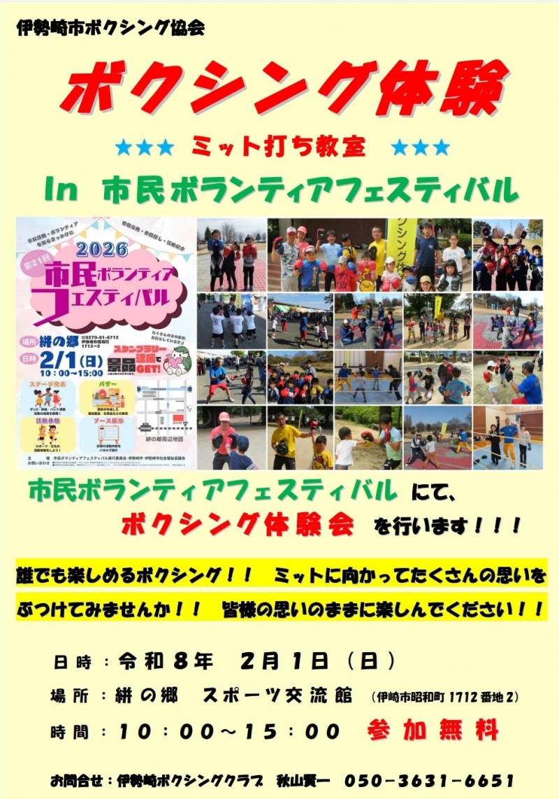 伊勢崎市民ボランティアフェスティバルにてボクシングブースを設けます(^^)/