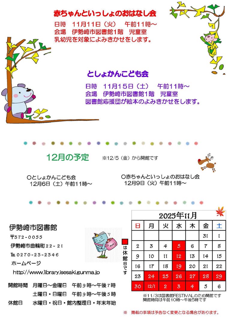 「伊勢崎市図書館 11月の伊勢崎市図書館だより 」を見てます!