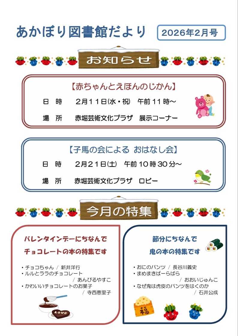 「赤堀図書館 2月の赤堀図書館だより 」を見てます!