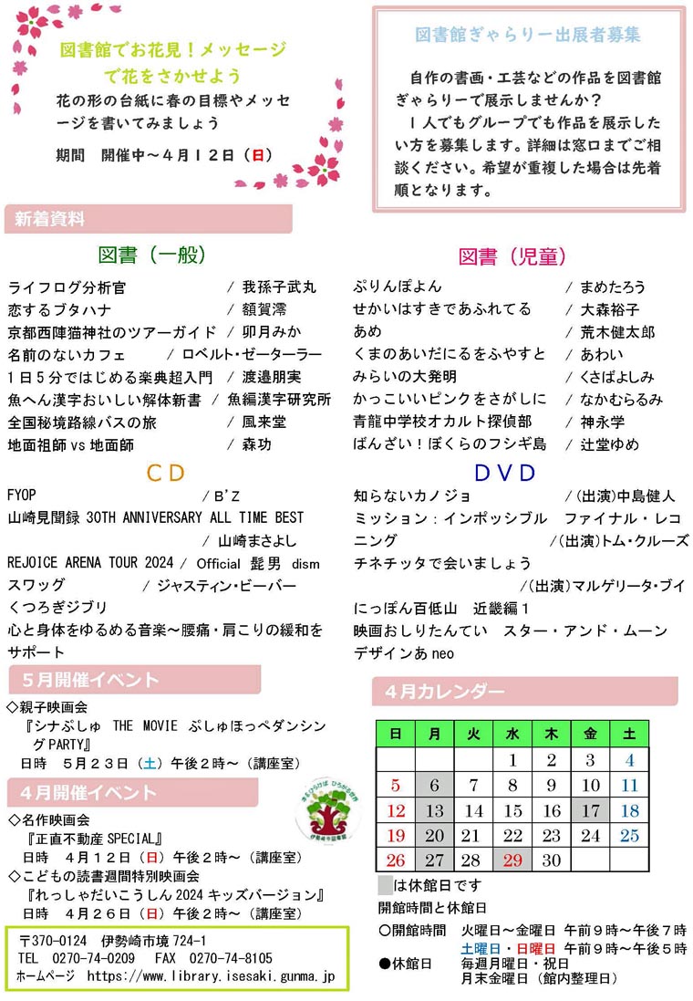 「境図書館 4月の境図書館だより 」を見てます!