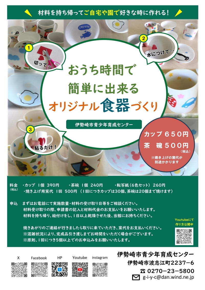 ■伊勢崎市青少年育成センター「おうち時間で簡単に出来るオリジナル食器づくり」