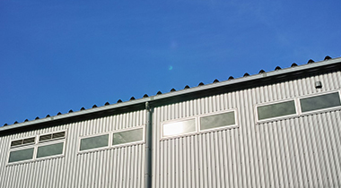 倉庫や工場、商業施設で多く使用され、安価で施工性が良く、縦ラインがシャープな印象を与える外壁材です。